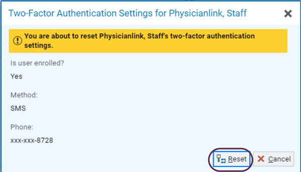 Reset your PhysicianLink user's two factor authentication (2FA)
